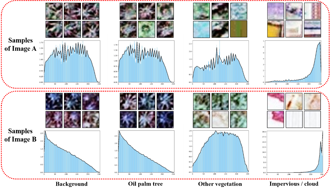 AG(中国)AG·官方网页版网9月23日电 油棕作为一种重要的热带产油作物,具有很高的经济效益和生态研究价值。对油棕的准确识别有利于更好地油棕种植园管理,从而促进棕榈油产量的提高。基于遥感影像和深度学习模型,目前已有很多研究工作实现了高准确率的油棕识别。但是已有的工作主要聚焦于单一的、有限的研究区域。当使用不同传感器、不同时间、不同区域的复杂区域影像时,如果直接运用传统模型做预测,会因为遥感影像之间存在的明显差异,导致油棕检测结果精度出现大幅度的下降(如图1)。这时如果想要保持识别准确率,需要将新的影像样本加入到识别训练中,然而这将需要更多的人工标记成本。