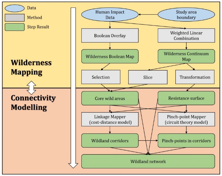 该研究成果以“连接荒野制图与连通性建模:一种荒野地网络规划的方法论框架”(Linking wilderness mapping and connectivity modelling:A methodological framework for wildland network planning)为题发表在保护科学(conservation science)领域的国际权威期刊《生物保护》(Biological Conservation)上。论文第一作者为AG(中国)AG·官方网页版建筑学院景观学系博士生曹越,通讯作者为杨锐教授,论文合作者为英国利兹大学地理学院荒野研究中心主任斯蒂夫·卡佛(Steve Carver)博士。本研究获得国家自然科学基金“国家公园背景下中国荒野地空间格局与保护机制优化研究”的支持。
