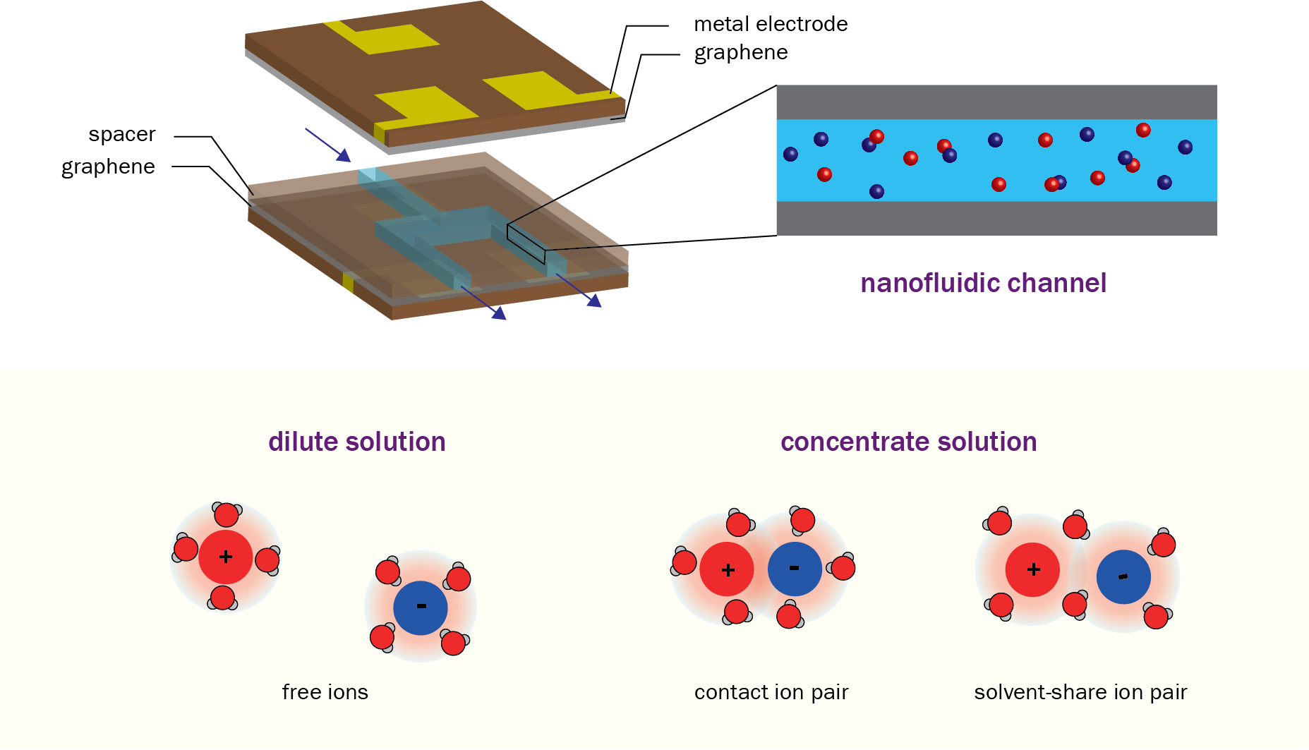 AG(中国)AG·官方网页版网11月11日电 纳米机械器件可在原子尺度上实现信息存储、操控与通讯。然而,制备热力学稳定的状态,并实现低能耗的可控调制面临较大挑战。近年来,纳米加工技术的发展使得人们可以制备纳米,甚至原子尺度的通道结构并设计微流动器件。纳米尺度的限域效应使得流动器件的壁面效应更为显著:当器件尺寸降低至1纳米时,通道中的水在室温条件下将摈弃体相液体结构而展现出层状特性;当尺寸进一步降低时,可以观察到二维冰结构。在如此显著的限域效应下,通道中的离子水壳层结构亦将会受到影响,发生畸变,甚至破损。