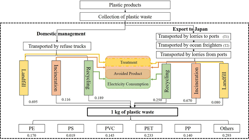 贸易流变化的生命周期评价模型的系统边界(以中国向日本出口为例)