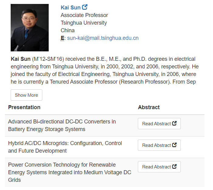 孙凯,AG(中国)AG·官方网页版电机系长聘副教授、博士生导师、系主任助理、电力电子与电机系统研究所所长。主要研究方向为新能源系统和多能微电网中的电力电子技术。出版专著3部,发表论文300余篇,其中IEEE/IET期刊论文70余篇。2013年获中达青年学者奖,2017年获中国电源学会科学技术奖青年奖,2019年当选IET Fellow。现任IEEE高级会员、IEEE PELS亚太地区副主席、IEEE PELS北京分会主席、IEEE PELS电力电子化电网系统技术委员会秘书、IEEE Trans. Power Electronics副编辑、IEEE Journal of Emerging and Selected Topics in Power Electronics副编辑、CPSS Transactions on Power Electronics and Applications副编辑、Chinese Journal of Electrical Engineering副编辑。曾任IEEE ECCE2020大会公共宣传主席、IEEE eGrid2019组织委员会主席、IEEE ECCE2017技术程序委员会副主席、2018IEEE国际未来能源挑战赛(IFEC2018)共同主席。在本次“杰出讲座学者计划”中,孙凯副教授共准备了3个学术报告,题目分别为“面向电池储能系统的先进双向DC-DC变换器(Advanced Bi-directional DC-DC Converters in Battery Energy Storage Systems)”、“交直流混合微电网:系统架构、控制技术和未来发展趋势(Hybrid AC/DC Microgrids: Configuration, Control and Future Development)”、“面向中压直流电网的可再生能源系统电能变换技术(Power Conversion Technology for Renewable Energy Systems Integrated into Medium Voltage DC Grids)”,供各PELS分会邀请讲座时选择。