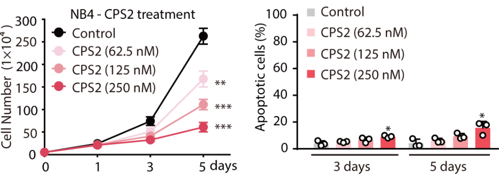 图4. CPS2对正常细胞影响较小,但可阻滞肿瘤细胞快速增殖