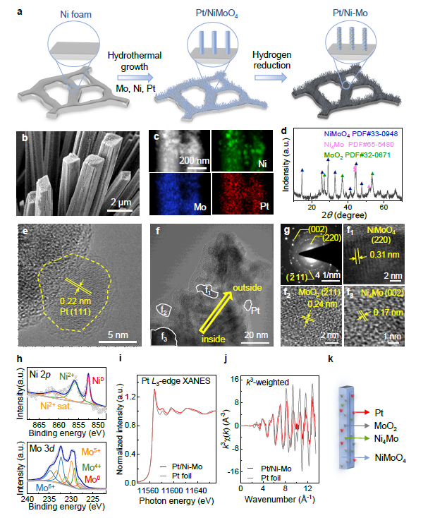 Pt/Ni-Mo的独特结构和组成通过提升物质传输与电荷传输进而增强析氢反应性能