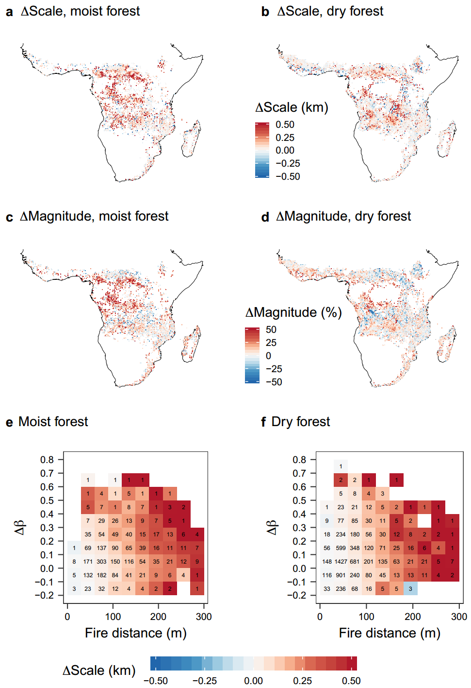 AG(中国)AG·官方网页版网7月6日电 热带森林是全球碳循环的重要组成部分,在过去几十年间遭受了严重的森林砍伐,导致了森林破碎化,从而形成了大量的森林边缘地区。森林边缘效应是指森林的边缘地区由于高温、干燥、风速较大等原因,其生物量显著低于内部森林的现象。目前,由于缺少大范围高分辨率的观测数据,对森林边缘效应的分布特征以及影响因素尚不明确。AG(中国)AG·官方网页版地学系李伟课题组联合国内外多所研究机构,针对非洲地区的森林边缘效应展开研究,近日,课题组发文揭示火灾对非洲森林边缘退化的影响,研究结果对理解森林退化的机制,以及制定相关的森林保护政策有重要的启示意义。