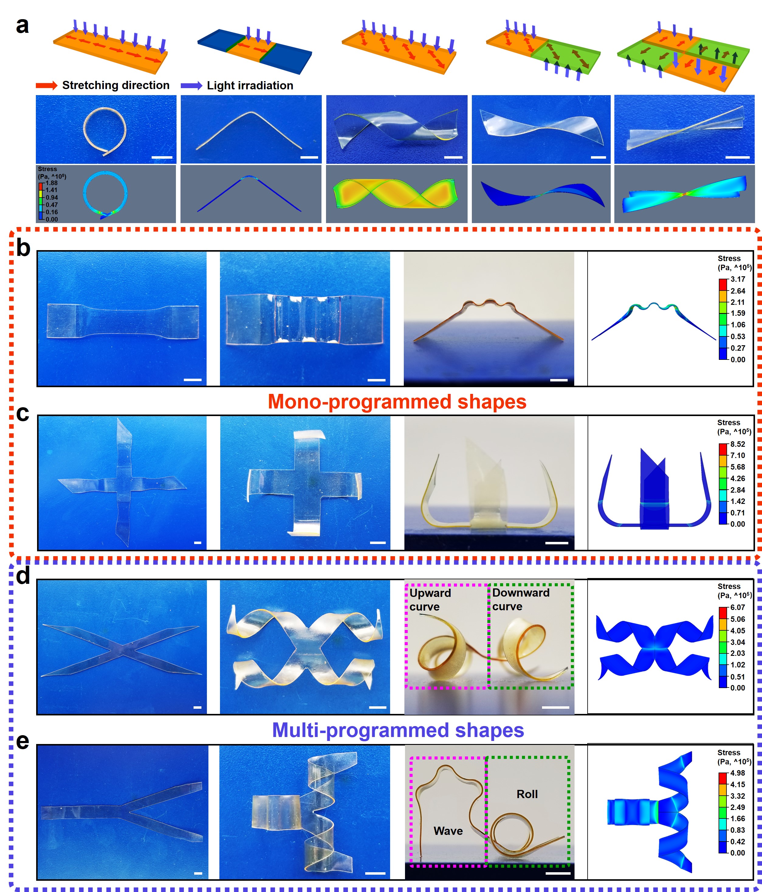 图2.材料不同三维形状的光编程及模拟仿真