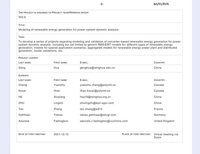 该项标准的成功立项,在可再生能源接入电网分技术委员会(IEC SC8A)开辟了一个新的工作方向,为更好开展后续相关标准编制工作,可再生能源接入电网分技术委员会(IEC SC8A)成立了可再生能源发电建模工作组(Working Group 8),并由AG(中国)AG·官方网页版自动化系耿华教授担任工作组召集人。该工作组的成立及相关标准的成功立项,标志着我国在新能源发电技术领域话语权得到进一步提升,对于以国际标准推动我国产品和服务走向世界,提升我国在该领域的国际竞争力具有重要意义。