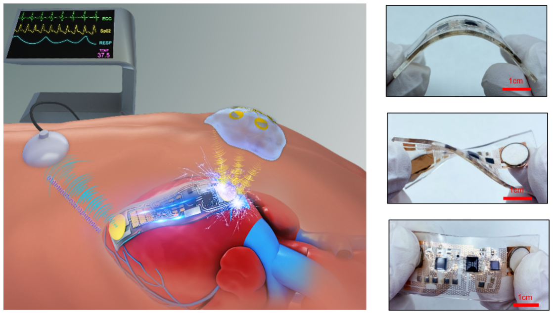 9月29日,冯雪课题组在《科学进展》(Science Advances)期刊上发表了题为《柔性可延展的超声能量传输及通讯系统》(“A flexible, stretchable system for simultaneous acoustic energy transfer and communication”)的论文,描述了一种新型超薄超柔的植入式超声系统,可以基于超声波进行无线能量输送以及无线数据传输,并与人体组织器官良好兼容。该系统可解决现有植入式医疗器械在体内的能源续航及供应难题,为植入式医疗器械的设计提供了一条新途径,在心脏起搏、全植入泵和人工器官等重要临床场景有重大应用潜力。