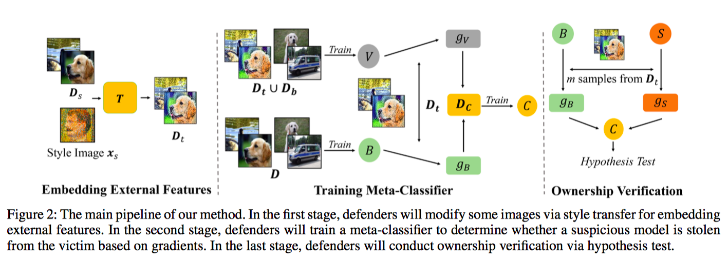 《通过验证嵌入的外源特征防御模型偷盗》(Defending against Model Stealing via Verifying Embedded External Features,作者:数据科学和信息技术专业2020级博士生李一鸣/计算机技术项目2020级硕士生朱玲慧,导师:江勇/夏树涛)。