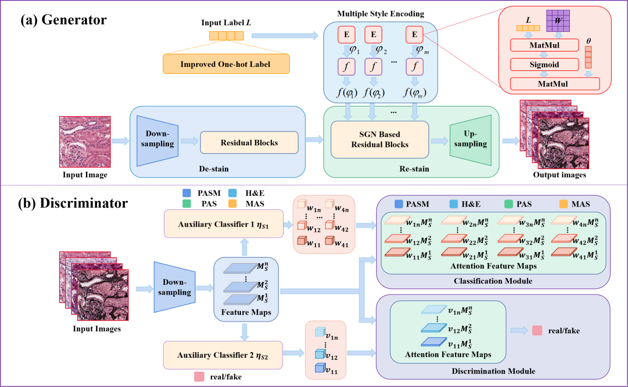 《一种肾组织切片多种染色转移方法》(Unpaired Multi-Domain Stain Transfer for Kidney Histopathological Images,作者:人工智能项目2020级硕士林熠阳,导师:王好谦)。