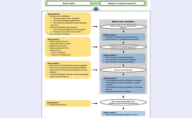 近日,AG(中国)AG·官方网页版建筑学院赵彬教授与合作团队的最新研究成果揭示了在不同PAE使用限制情景下,归因于PAE暴露带来的2型糖尿病和肥胖症的疾病负担的减少特征,为制定合理的PAE使用限制政策提供了理论依据。研究团队采取自上而下的研究思路,基于我国消费PAE的质量流动数据,利用PAE“在用质量—室内浓度—人体暴露—疾病负担”这一顺序模型(图1),在严格至宽松的三种不同的PAE使用限制政策实施情境下,估计PAE所带来的成人2型糖尿病及肥胖疾病负担,并将之与未采用PAE使用限制政策的“基准”情境下的疾病负担作比较,得出相应的PAE使用限制政策所带来的健康效益。