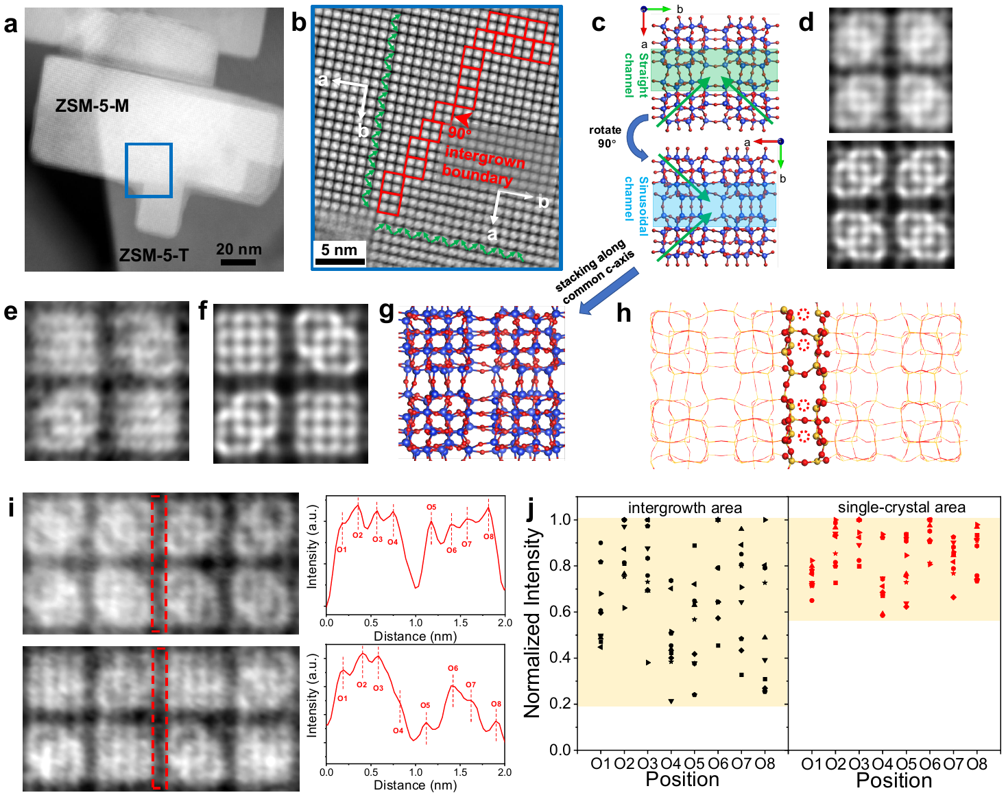 榫卯ZSM-5分子筛交生界面的原子级解析及骨架氧空位的指认