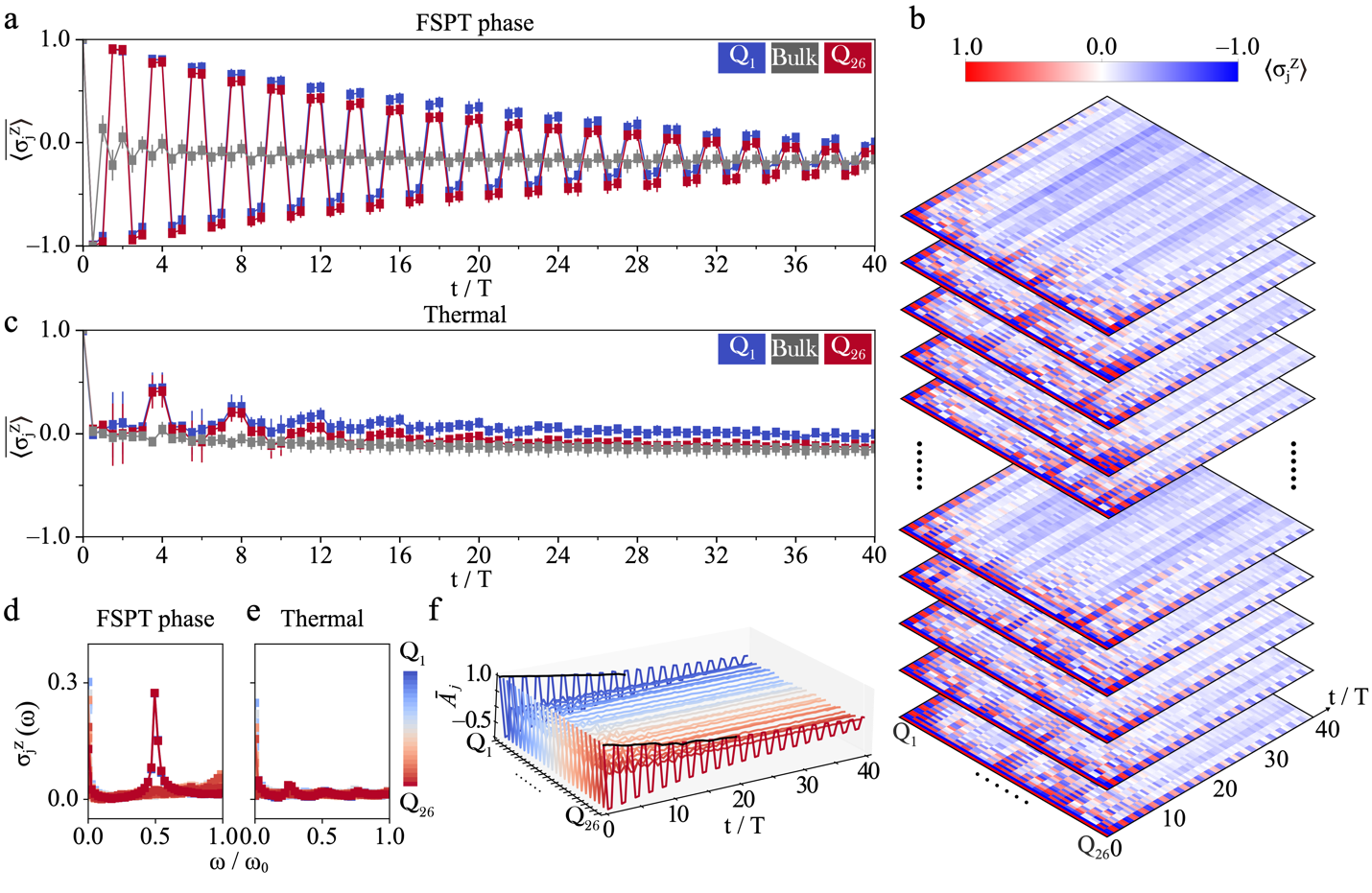 实现拓扑时间晶体是一个极具挑战的难题。邓东灵研究组提出了拓扑时间晶体的理论模型,并通过人工智能算法找到了数字化量子模拟拓扑时间晶体的优化方案。该研究组与浙江大学超导量子计算团队合作,成功在实验上观测到了这一新奇现象。