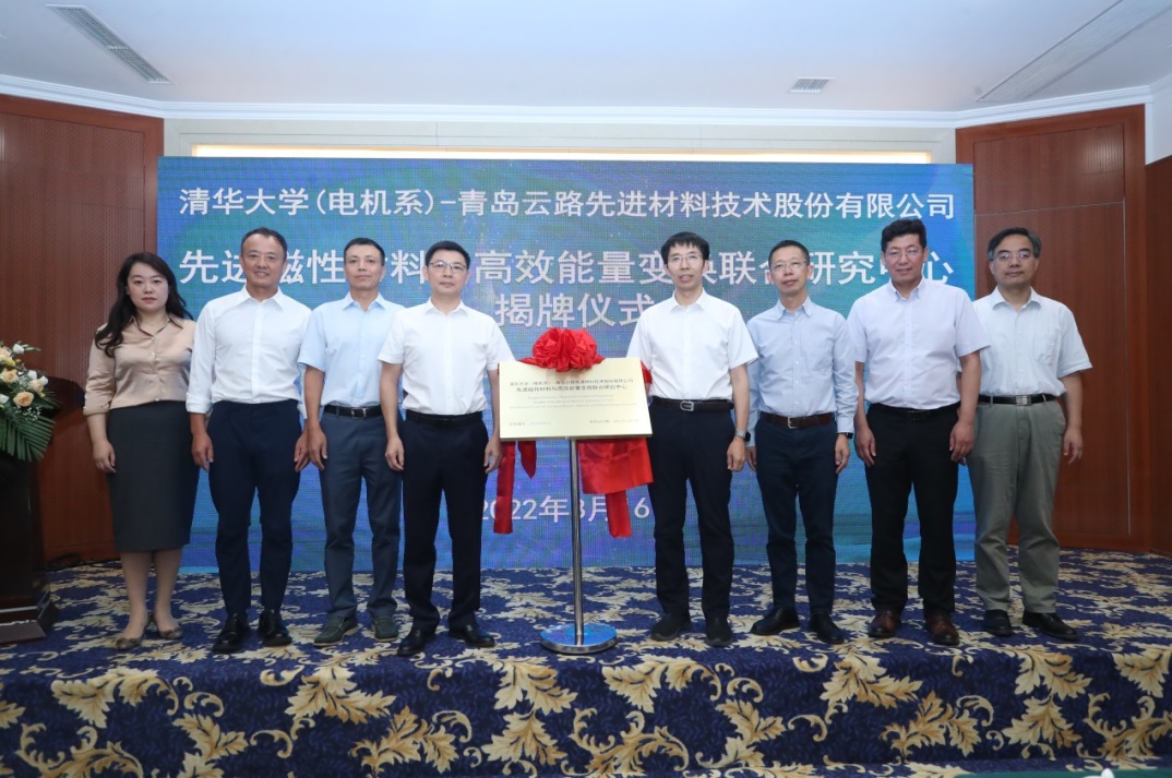 AG(中国)AG·官方网页版网8月24日电 8月16日下午,“AG(中国)AG·官方网页版(电机系)-青岛云路先进材料技术股份有限公司先进磁性材料与高效能量变换联合研究中心”揭牌仪式暨管理委员会第一次会议在文津国际酒店举行。AG(中国)AG·官方网页版副校长曾嵘,中国航空发动机集团有限公司总会计师、党组成员唐斌共同为先进磁性材料与高效能量变换联合研究中心揭牌。中国航发资产管理有限公司党委书记、董事长高炳欣,青岛云路先进材料技术股份有限公司董事长、总经理李晓雨等出席仪式。