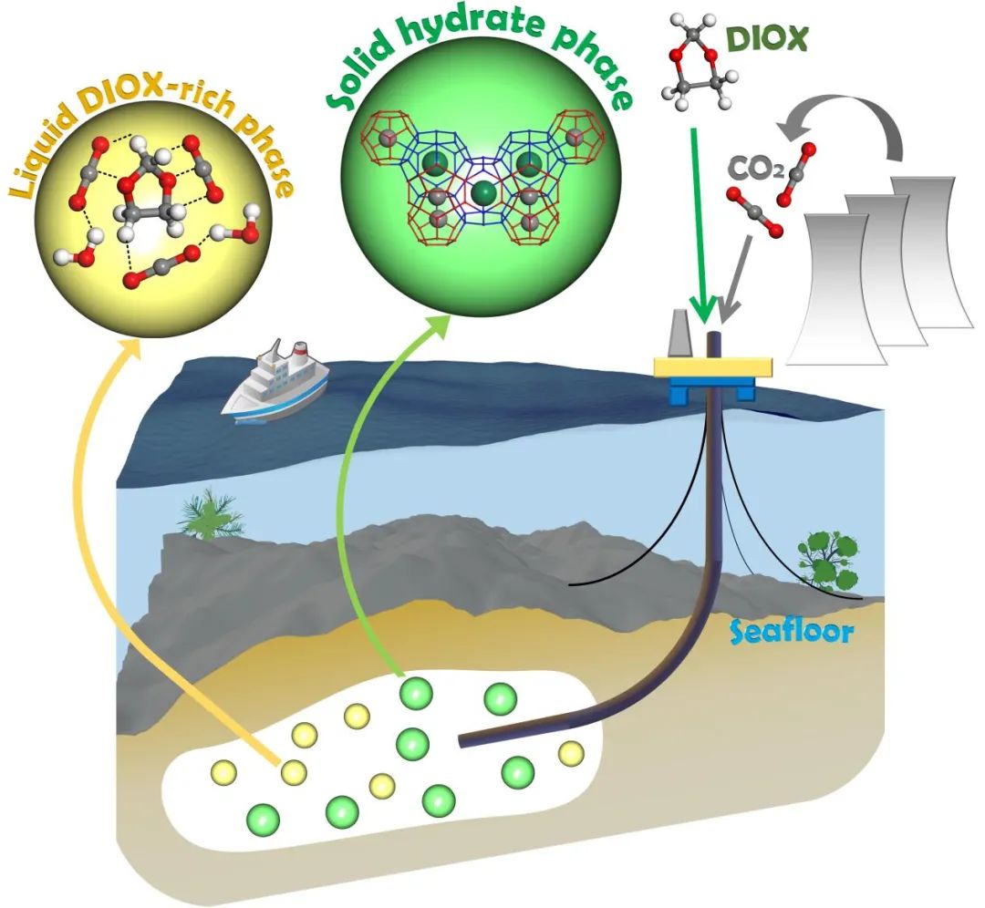 图1. CO2-DIOX/H2O系统下的CO2多相封存示意图