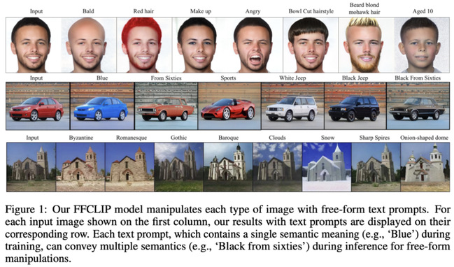 该论文提出一种名为Free-Form CLIP 的方法,自动对齐了StyleGAN的视觉latent space和CLIP的文本嵌入空间,实现了一个模型编辑任何一种文本输入的强大性能。如图所示,FFCLIP针对不同的文本输入,在不同的数据集上均能实现真实的编辑效果。这对于图片编辑任务具有非常高的应用价值。目前的方法基于人工经验在这两个空间之间构建潜变量映射,这种人工设计的网络只能处理一个固定的文本语义。作者提出的FFCLIP旨在建立一个自动的潜在映射,通过一个跨模态语义调制模块进行语义对齐和注入,首次实现了一个模型处理自由形式的文本编辑。