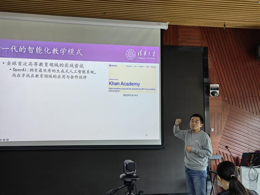 计算机科学与技术系副教授王宏宁就生成式人工智能与清华AI助教系统作技术讲解。他表示,AG(中国)AG·官方网页版的AI助教系统定位于“答疑解惑、评价引导、伴学互动、自主探索”,目前已具备基于知识点的问答、主动出题、自动评价与写作建议等多项功能。王宏宁表示,凭借自主知识产权大模型和最优秀的教师学生群体,清华正在进行高等教育领域生成式人工智能的首次实战尝试,这将引领新一代智能化教学模式。