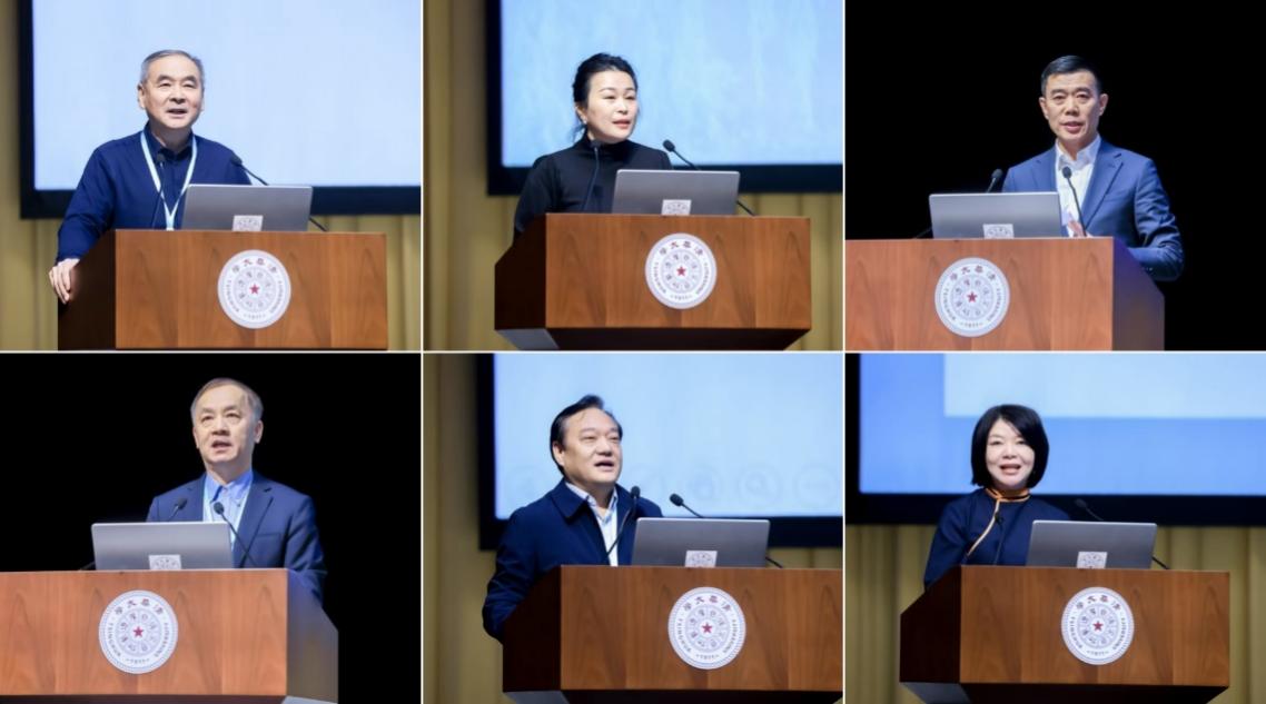 朱尽晖、杜卫、尹爱青、郭声健、许锐、吴磊、赵洪作主题发言(从左至右,从上至下)
