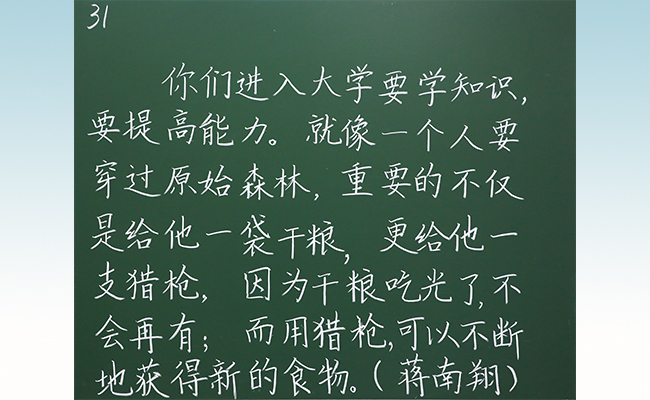 杜鹏飞表示,为了进一步办好粉笔板书这个品牌比赛,校工会和书法协会进行了细致深入的策划研讨。从比赛举办三年来看变化,已经越来越感受到这个活动的意义。可以看到,参与比赛的选手中教师的积极性在逐年上升,选手们的板书作品让人眼前一亮,内容比以往更加丰富,板面更有设计感。