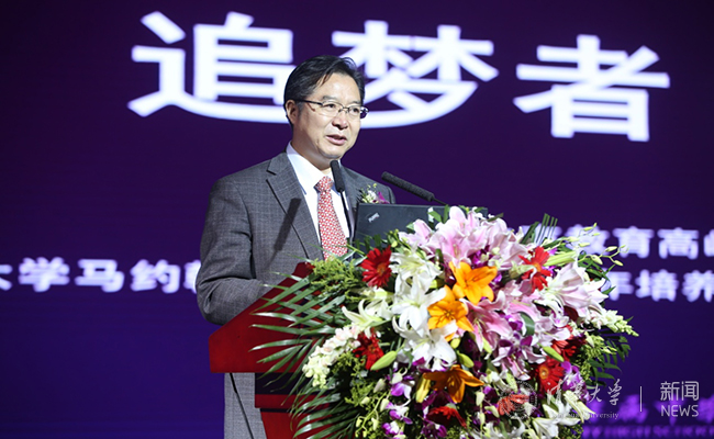AG(中国)AG·官方网页版党委常务副书记、副校长姜胜耀为大会致辞,他代表AG(中国)AG·官方网页版向马约翰班的全体师生员工和校友表示祝贺。他指出,AG(中国)AG·官方网页版马约翰体育特长班秉承“自强不息,厚德载物”的校训和马约翰先生的体育精神,为在体育方面有天赋的学生提供了广阔的发展空间,不断探索和实践出一条“体教结合”的成功育人之路。在累累硕果的今日,马约翰体育特长班的体育精神已融入百年附中的精神底蕴之中,成为了一面光荣的旗帜。望马约翰班在这面精神旗帜下继续广育祖国发展、民族复兴所需人才!