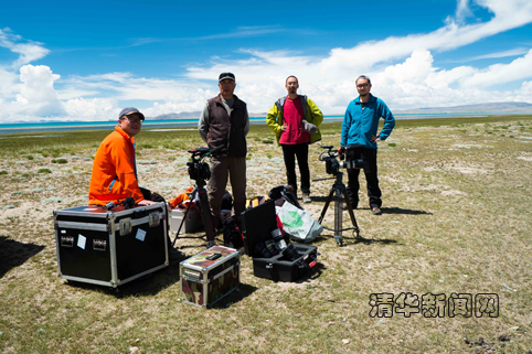 副导演郭伟松在高海拔进行航拍准备。