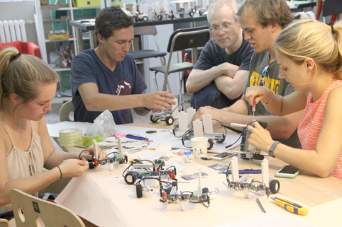 从基础工业训练中心时期老旧的机械厂房,到现代化智能化的大楼,i.Center中心主任李双寿教授表示,搬迁不是简单的物理位置的变换,而是以“学生为主体、创新为驱动”育人理念的提升和体现。2013年,结合国内工程教育的特点及要求,中心率先在高校中将创客活动融入教学实践——“我们并非赶时髦,而是看到了创客空间是符合时代特点、适合人才培养的教育模式。用新颖的模式提升学生的学习志趣,激发创新热情,用创新实践活动为手段,让理工、人文、社会学科相融合,充分释放学生巨大的创新潜力。i.Center也不是简单的模仿,开设一个一般意义的创客空间,而是通过建设‘创客交叉融合空间’,探索适合中国高校学生的培养模式。”李双寿说。