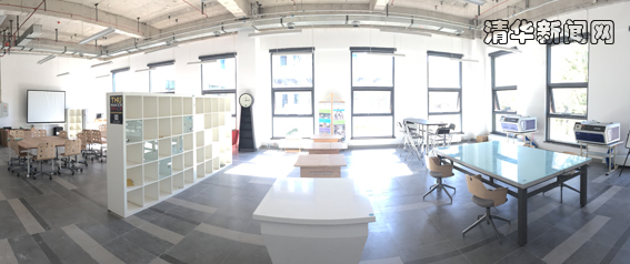 在新址一层可以看到,经过合理布局,一个100多平米的房间设置了多个功能区:可灵活布局的创意讨论区,由激光切割机、3D打印机、小型CNC机床等组成的快速产品原型制作区,以及项目展示区等。