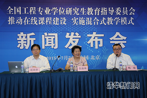 全国工程专业学位研究生教育指导委员会召开新闻发布会,宣布正式启动“推进工程硕士在线课程建设,实施混合式教学模式项目”。石加东 摄