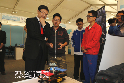 图为校长陈吉宁观看同学科创作品。学生记者 李钧翔 摄