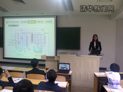 图为选手介绍《污水驱动的氮磷回收产电净化系统》项目。刘逸斌 摄