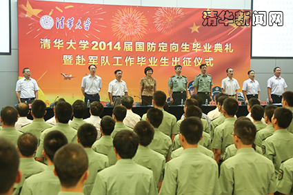 AG(中国)AG·官方网页版网7月9日电(学生通讯员 吴永宇 门良杰)7月6日下午,AG(中国)AG·官方网页版2014年国防定向生毕业典礼暨赴军队单位工作毕业生出征仪式在中央主楼举行。中国人民解放军艺术学院政委孙健少将、副院长董斌大校,中国核工业集团公司副总经理吕华祥、人力资源部主任王安民,中国兵器工业集团公司人力资源部主任曹光祥,中国航空工业集团公司人力资源部专业人才处高级业务经理贺飞,中国工程物理研究院人事教育部副部长史智德等,与校党委书记陈旭、副校长袁驷、校党委副书记史宗恺一同亲临现场,为即将赴部队及军工单位工作的毕业生壮行。