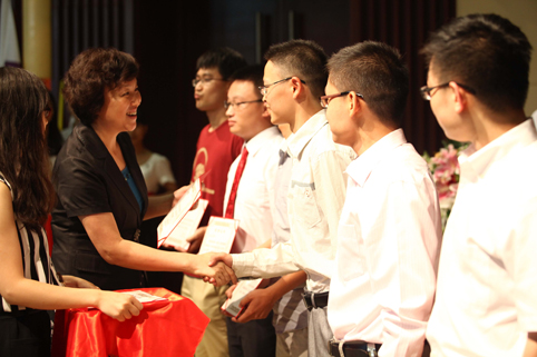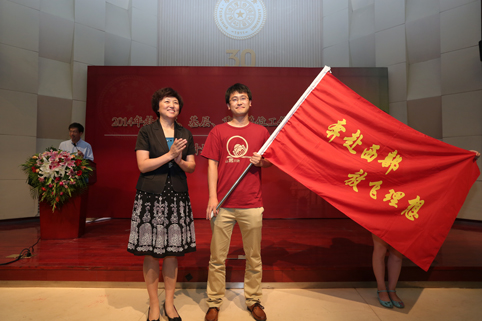 仪式上还对2014年“启航奖”获奖者进行了表彰。副校长袁驷宣读了2014年毕业生“启航奖”表彰决定及获奖名单。陈旭与袁驷分别为获得“启航奖”金奖和“启航奖”集体奖的获奖代表颁发奖章并向导师代表授奖牌。