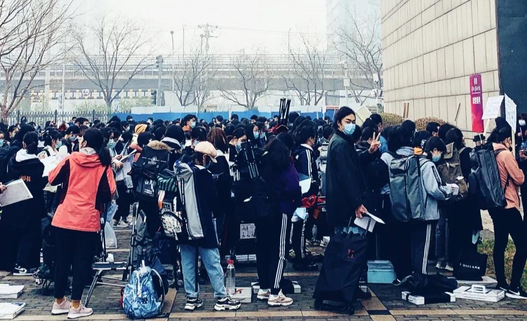 清华美院考点考生排队入场