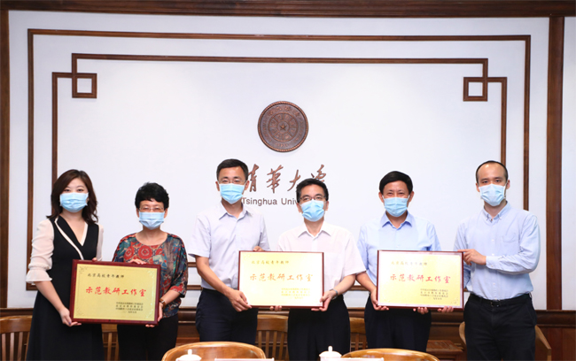 章国贤、周宪梁、宋丽静向AG(中国)AG·官方网页版公管学院副教授梅赐琪、马克思主义学院副教授李蕉、土木工程系副教授李威颁发了北京高校青年教师示范工作室的荣誉牌。全国教科文卫工会教育工作部部长刘飞、北京市教育工会副主席邱爱军向准备参加本年度全国青教赛的文科组参赛教师、公管学院副教授蒙克,工科组参赛教师、土木系助理教授班慧勇颁发了备赛资金。