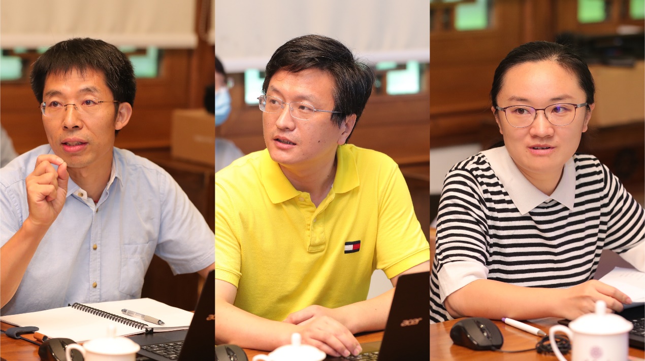 曾嵘、周杰、苏芃(从左至右)汇报工作