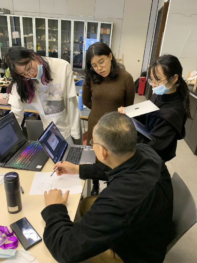 吴诗中教授在课堂上辅导同学们修改文创方案
