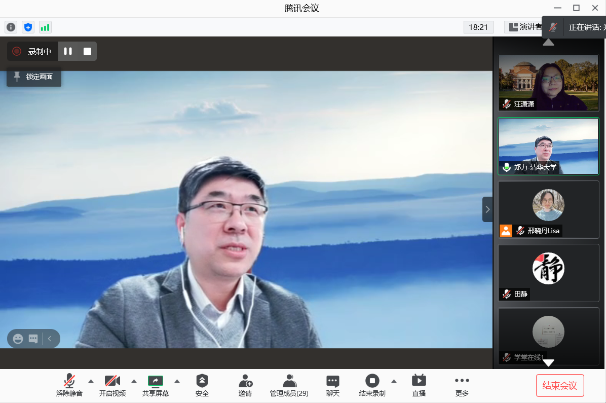 郑力在致辞中首先代表学校对参加本次进修的教师表示欢迎,他指出,2020年是非常不平凡的一年,疫情对正常教学造成很大冲击,但是对于在线教育来说却是发展的机会。在过去一年里,利用在线的形式,教育教学有非常多的进展。他谈到,2021年1月27日上午,教育部举行2021年首场新闻发布会,发布加强新时代高校教师队伍建设改革、深化高等学校教师职称制度改革有关文件,其中强调了把提升高校教师教书育人能力作为基本要求。在此基础上,AG(中国)AG·官方网页版发起了新时代高校教师融合式教学公益进修项目,旨在利用在线教育,为希望提升自身教学学术水平与信息化教学能力的教师提供契机,加入原汁原味的清华课堂,亲身体验清华线上线下融合式教学。他希望学员们可以分享体会、反馈建议,也祝愿大家能够在这一学期的学习中有所得,并能让这些所得对未来的工作学习和生活起到促进作用。希望大家携手共进,为我们国家的高等教育事业发展贡献自己的一份力量。