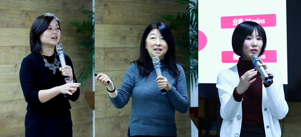 李蕉、李蔚、刘慧凝(从左到右)作专题报告和经验分享