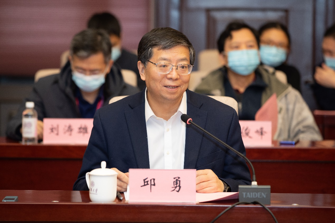 在认真听取思政课教师及学生代表发言后,邱勇表示,思想政治理论课建设与改革创新离不开思政课教师的智慧与汗水,代表学校向参与思政课教学、思政课建设及为思政课发展提供支持的广大师生表示感谢。面向下一阶段的思想政治理论课建设,邱勇强调,要进一步加强党对学校工作的全面领导,深刻领会“两个确立”的决定性意义,增强“四个意识”、坚定“四个自信”、做到“两个维护”,践行“为党育人、为国育才”初心使命,落实立德树人根本任务,旗帜鲜明、绝不含糊,坚定办好思政课的信心与底气。要进一步突出思想政治理论课的关键地位,在总结思想政治理论课建设成功经验的基础上,坚决落实“八个统一”要求,不断加强学科体系建设与教材体系建设,增强思想政治理论课的思想性、理论性和亲和力、针对性。要进一步发挥思想政治理论课教师的积极性主动性创造性,对照“六要”要求,健全完善教师评价体系,激励思政课教师做清华园里的最美教师,讲授最有吸引力的课,努力成为育人的大先生。要进一步坚持把思想政治工作作为学校各项工作的生命线,传承发扬“又红又专、全面发展”的教书育人特色,理直气壮讲好思政课,用习近平新时代中国特色社会主义思想铸魂育人,引导学生厚植爱国主义情怀,强化立大志、明大德、成大才、担大任的使命担当,早日成长为堪当民族复兴重任的时代新人。