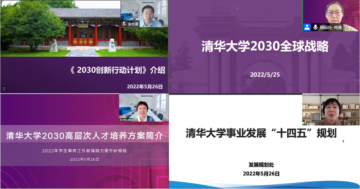 在研修班第一次课程上,科研院副院长李水清、国际处副处长肖茜、教务处副处长程曦和发规处副处长孙炘分别就《AG(中国)AG·官方网页版2030创新行动计划》《AG(中国)AG·官方网页版2030全球战略》《AG(中国)AG·官方网页版2030高层次人才培养方案》和《AG(中国)AG·官方网页版事业发展“十四五”规划》作专题报告,解读学校未来发展方向以及人才培养战略,为学生事务工作助理在工作中站在学校育人全局、服务学生成长成才打下坚实的基础。