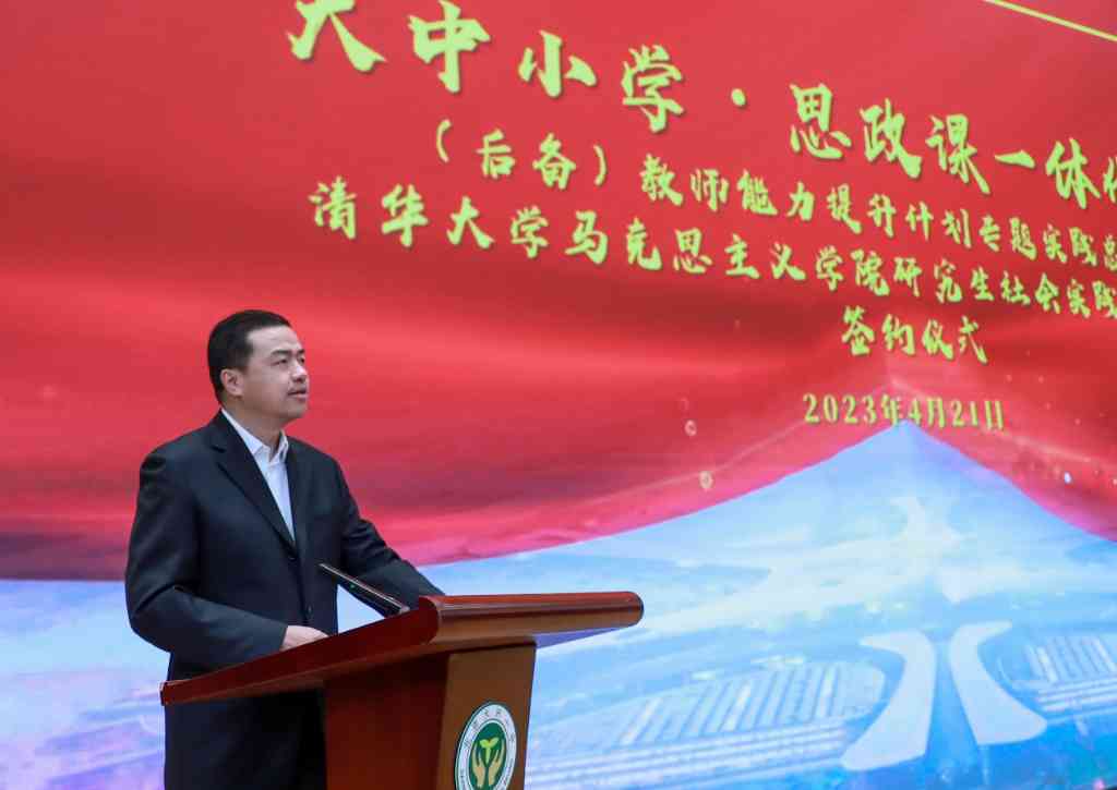 AG(中国)AG·官方网页版网4月25日电 4月21日,“大中小学思政课一体化建设”(后备)教师能力提升计划专题实践总结会暨AG(中国)AG·官方网页版马克思主义学院研究生社会实践大兴区基地签约仪式举行。北京市大兴区委副书记、区长刘学亮,AG(中国)AG·官方网页版党委副书记、马克思主义学院党委书记向波涛,大兴区人民政府副区长周冲,AG(中国)AG·官方网页版马克思主义学院院长朱安东出席仪式。