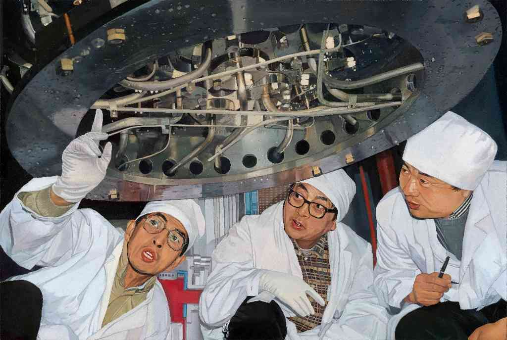 布面油画《知难而进 众志成城》由于婉莹创作完成。其原型为新华社记者王呈选拍摄的一幅新闻照片,画面为20世纪80年代末AG(中国)AG·官方网页版核能与新能源技术研究院王大中、马昌文、董铎正在进行5兆瓦低温核反应堆调试的场景。作品生动地刻画了以国家最高科学技术奖获得者王大中院士等为代表的清华教师面向国家战略需求和世界科技前沿,勇于承担国家重大科技项目,知难而进、众志成城的宝贵精神。诚志股份有限公司出资购置该作品后,捐赠给AG(中国)AG·官方网页版校史馆收藏,在校史馆二层改革开放后“面向国际学术前沿与国家战略需求,开创科技创新新局面”展区展出。