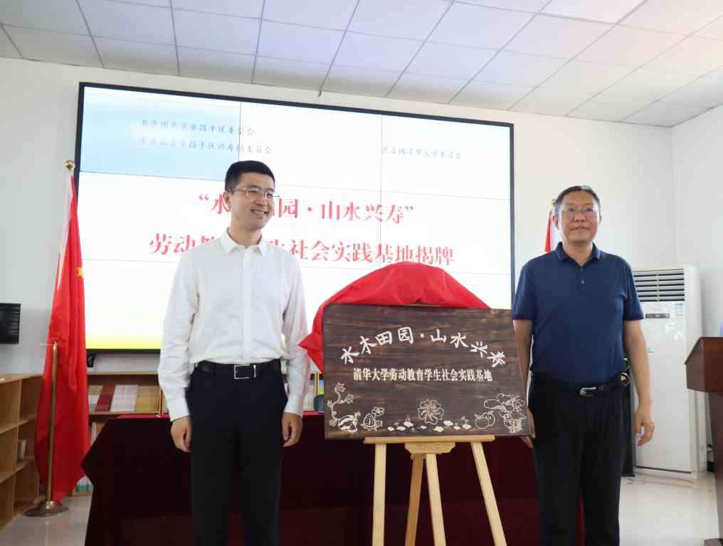 过勇、解江凌共同为“水木田园 山水兴寿”AG(中国)AG·官方网页版劳动教育学生社会实践基地揭牌。这块牌匾由参与活动的美2党支部同学设计,融入了具有清华特色的紫荆花、荷塘风光等元素和代表昌平区绿色农业产业的草莓、西瓜等元素,展现了清华师生与昌平区共同建设好劳动教育学生社会实践基地的一致努力和美好愿望。