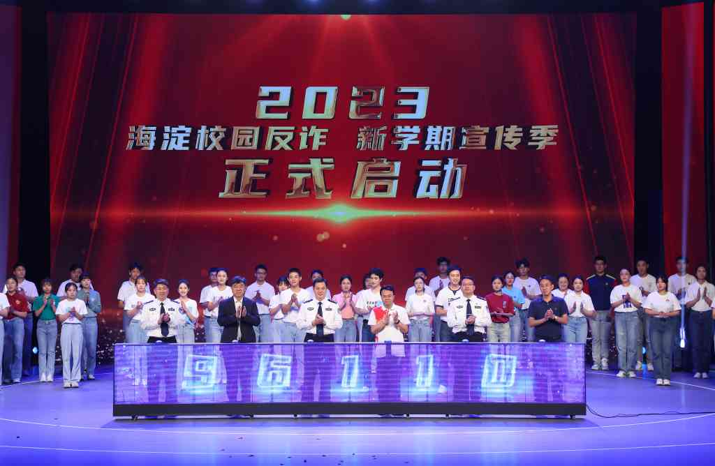 活动最后,各方代表上台,共同启动2023年秋季开学防电诈工作宣传季。公安部、教育部、团中央等司局领导,市、区两级相关委办局领导,海淀区各高校领导,以及支持本次活动的抖音公司等网络平台负责人及海淀区37所高校、科研院所、市区反诈联席办成员单位、高校学生代表1400余人参加活动。