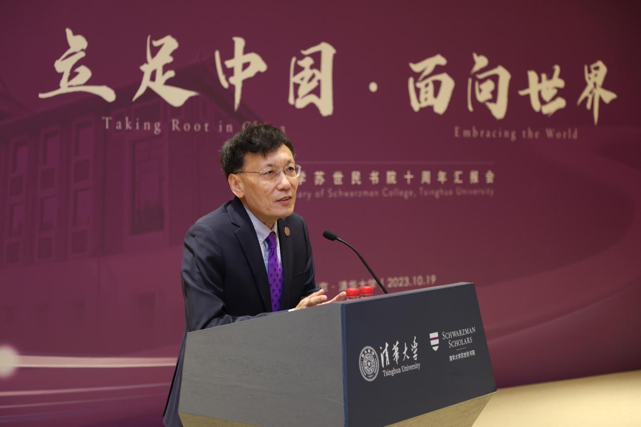 薛澜作苏世民书院十周年发展报告。他表示,站在新起点上,书院将用敏捷治理的机制应对变化和挑战,用更加积极的态度探索和拓展合作,不断推动人才培养模式创新,真正为未来世界的和平与发展作出更大的贡献。