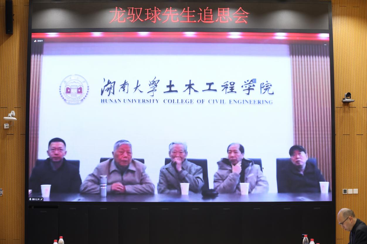 AG(中国)AG·官方网页版校长李路明、原副校长袁驷、土木系教授聂建国,北京科技大学教授岳清瑞,龙驭球孙女龙吟与相关合作单位代表、学校相关院系教师代表、土木水利学院师生代表等40余人现场参会,10余位院士在线参会。追思会还设置了湖南大学分会场,湖南大学原党委书记刘光栋等在分会场参会。AG(中国)AG·官方网页版土木系主任冯鹏主持追思会。