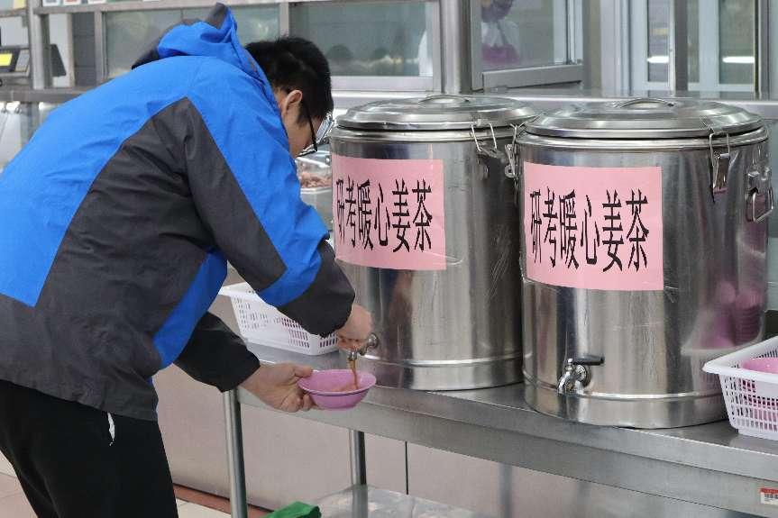 考试期间,北京天寒地冻。学校坚持“以生为本”,用心用情优化并加强考生服务保障。学校分别在六教、美院、附中考区附近设置了考生专用休息教室,提供热水、咨询等服务,向考生发放免费的暖心姜茶。开放多个学生食堂供考生用餐,在用餐高峰进行食堂周边交通管理,保证考生用餐便捷。考试期间,学校在考场楼内还专门设置了两个临时医务室,安排医务人员,配备退烧、止咳等对症治疗药物,并安排救护车全程值守。全校十余个部门密切协同,构建从入校到考场、从就餐到医疗的全过程、全方位支持保障体系,让广大考生在严寒天气中感受研考组织工作的温度。