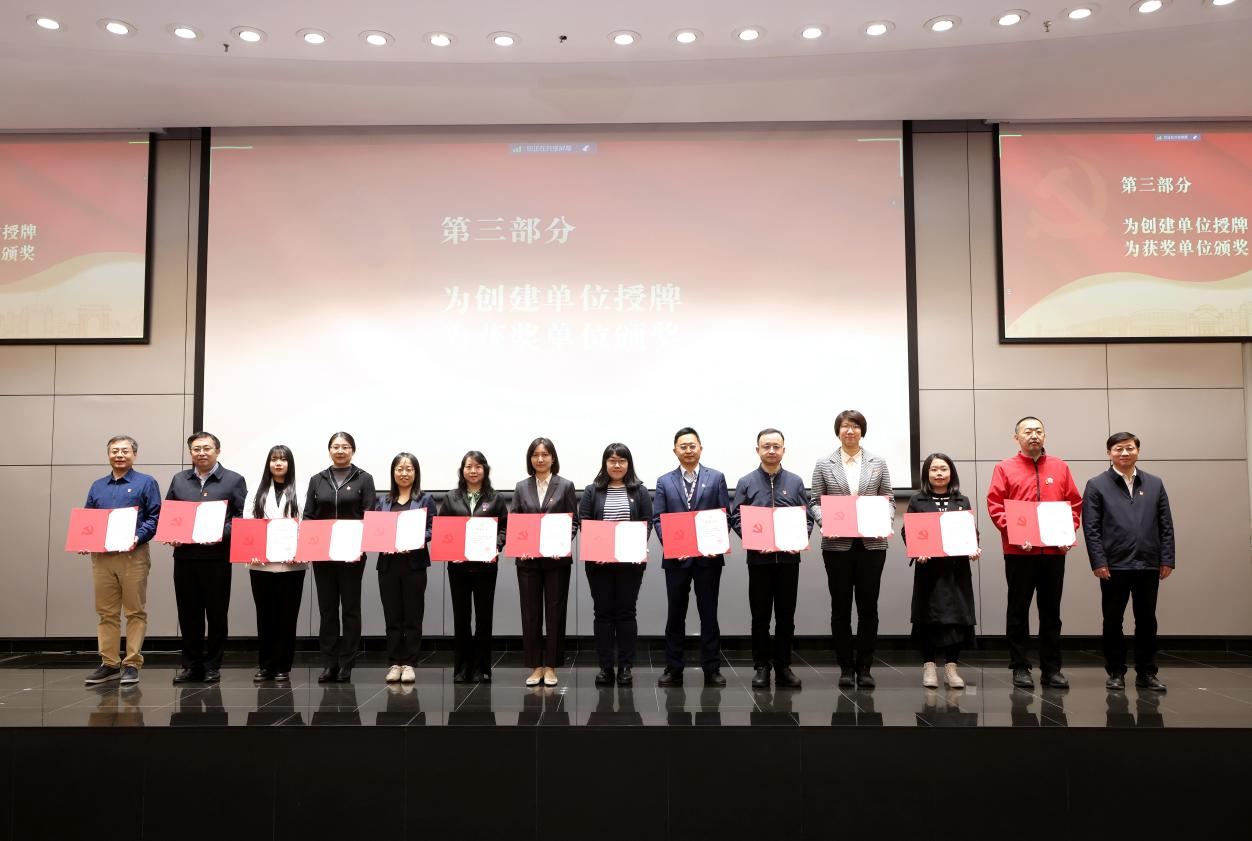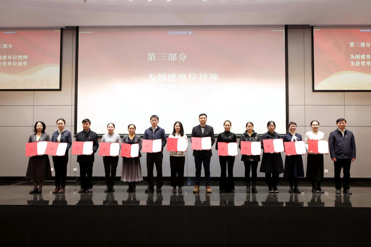 党委组织部副部长刘艳臣宣读了学校入选第四批全国党建工作标杆院系、样板支部名单,以及2023年基层党建质量提升“攀峰工程”特色项目获奖名单。许庆红为创建单位授牌、为获奖单位颁发表彰证书。