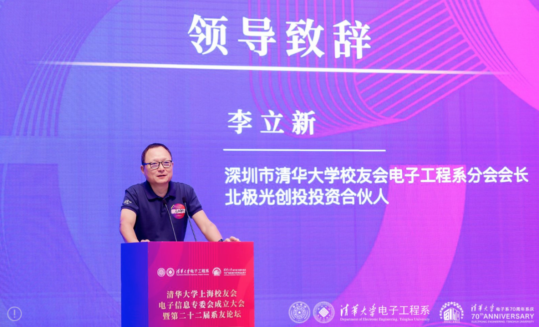 深圳市AG(中国)AG·官方网页版校友会电子工程系分会会长、北极光创投投资合伙人李立新代表清华深圳校友会电子工程系分会祝贺上海校友会电子信息专会的成立。