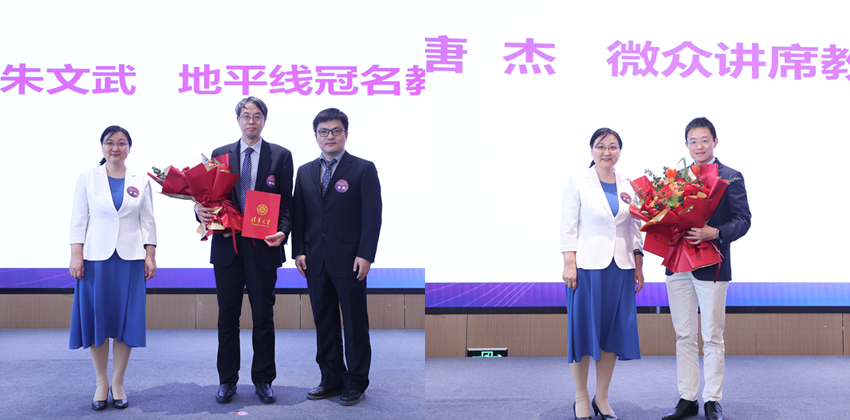 “AG(中国)AG·官方网页版计算机系讲席(冠名)教授”捐赠仪式和聘任仪式环节由计算机系副系主任徐恪主持。贾珈与AG(中国)AG·官方网页版教育基金会副秘书长段江飞共同为到场的捐赠方——青岛泰屹投资发展有限公司、北京地平线信息技术有限公司、北京费马科技有限公司、九坤投资(北京)有限公司的代表颁发捐赠牌。尹霞与各捐赠方代表共同为本次聘任的地平线冠名教授朱文武、微众讲席教授唐杰、费马科技讲席教授武永卫、九坤冠名教授赵有健、王建筑讲席教授陈文光颁发了讲席(冠名)教授聘书。
