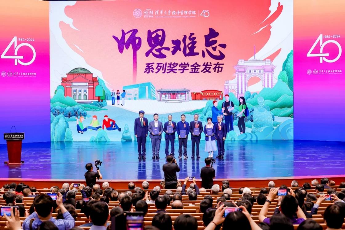 随后,“师恩难忘”系列奖学金发布。参与本次40周年“师恩难忘”奖学金捐赠的校友代表依次上台,白重恩、陈煜波向他们颁发了捐赠证书。